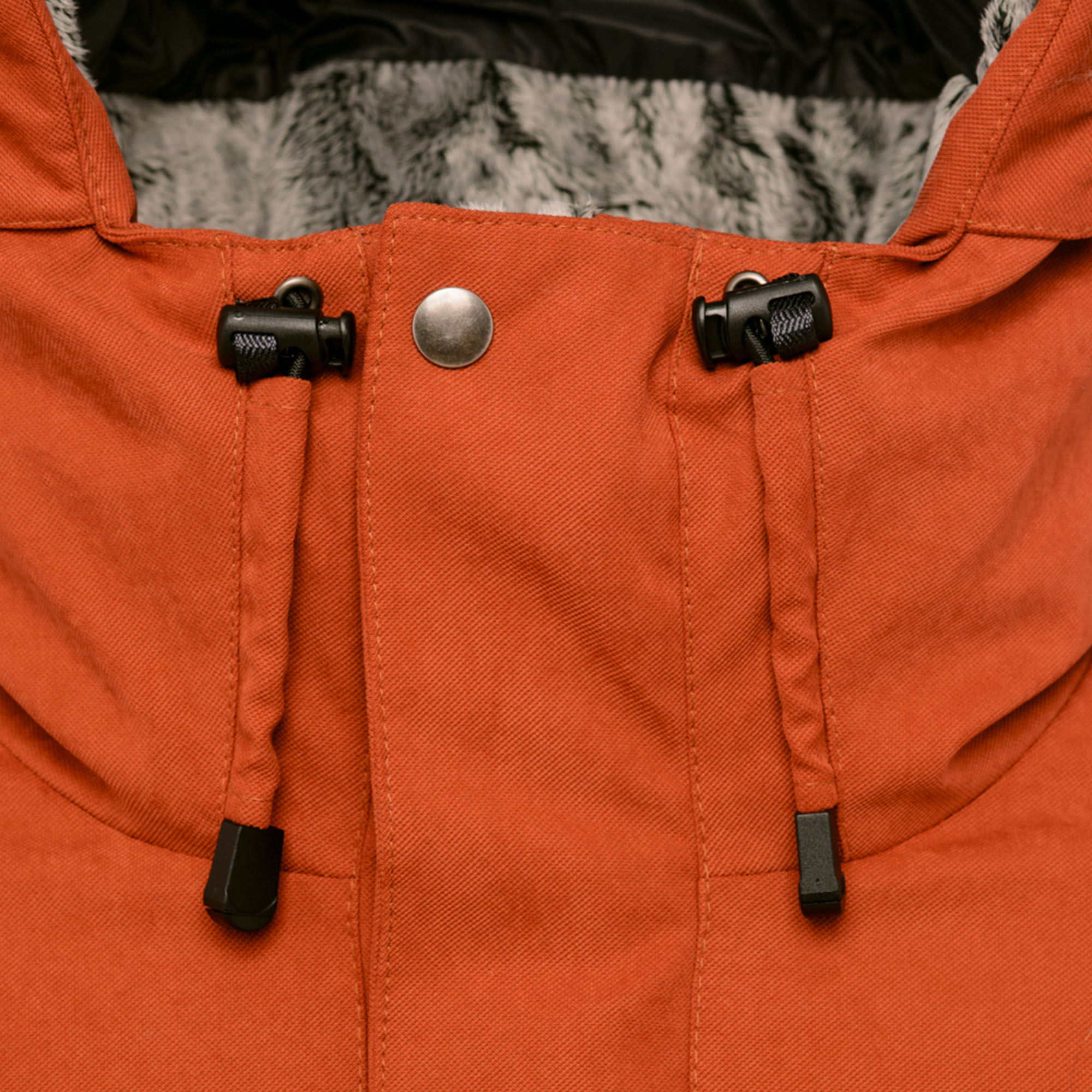 - Втачной капюшон-тубус регулируется эластичным шнуром с фиксатором