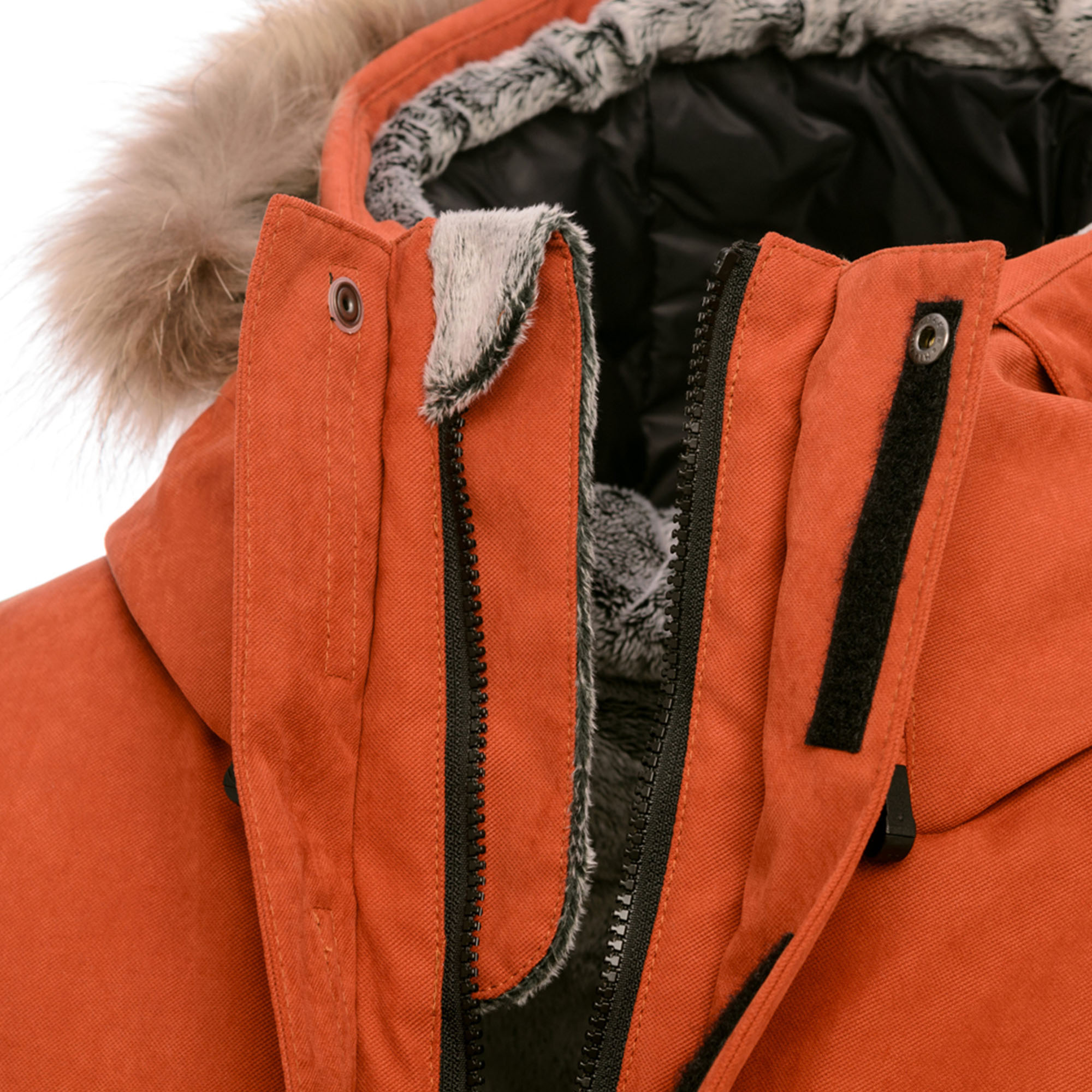 - Отстегивающаяся опушка из натурального меха енота
