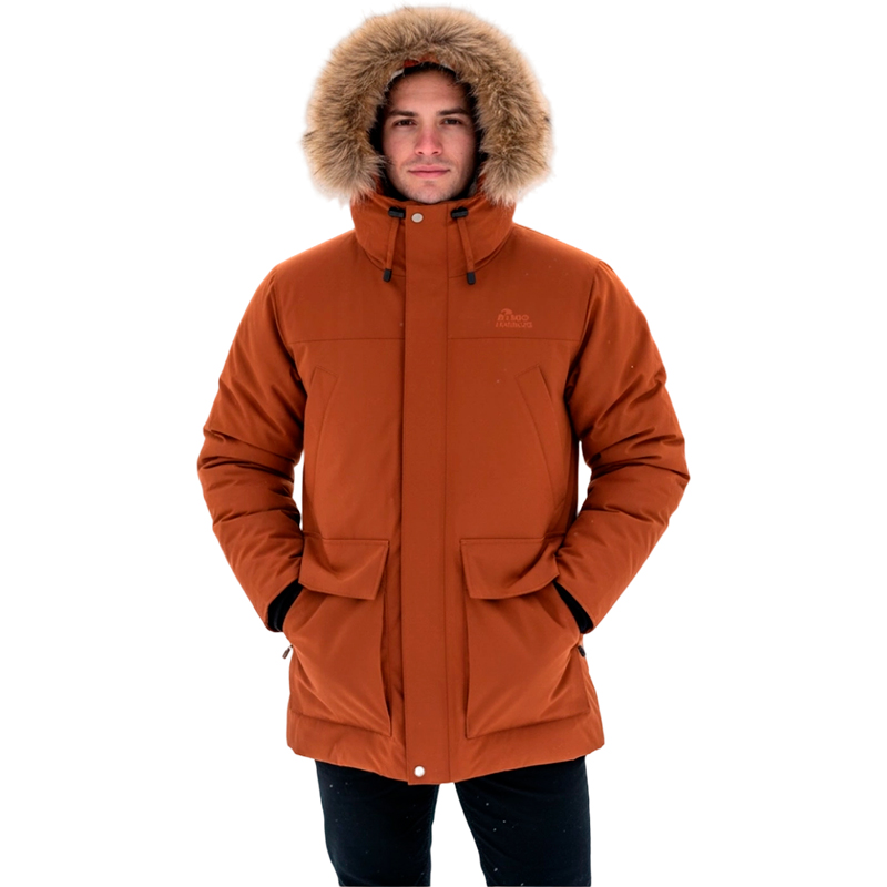 ДИКСОН – поселок городского типа, в котором находится самый северный порт России. Расположен на побережье Енисейского залива и на острове Диксон.Мужская пуховая куртка прямого свободного силуэта с внутренней регулировкой по талии, спинке и низу. Длина куртки до середины бедра. Удлиненная спинка хорошо удерживает тепло. Множество деталей дополнительного утепления создают комфортный микроклимат внутри пуховики. Анатомический крой в области плеч и рукавов позволяет свободное движение плечей и рук в стороны и вверх. Втачной капюшон-тубус регулируется по ширине и глубине, имеет отстегивающуюся опушку из меха енота. Модель предназначена для низких температур, сопровождающихся ветром и снегом.